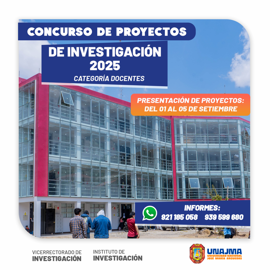 El Vicerrectorado de Investigación hace de conocimiento a toda la Comunidad Universitaria la convocatoria del Concurso de Proyectos de Investigación Categoría Docente 2025. Descargue las bases aquí 👇 bases-proyectos-investigacion-2025 Reprogramación...